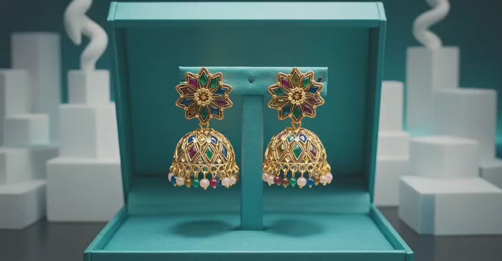 Noor-e-Jhumka brings timeless elegance to your collection with its luminous design and traditional craftsmanship. These exquisite jhumkas feature intricate detailing that catches light beautifully, making them perfect for both festive occasions and everyday wear. Handcrafted with premium materials, each pair celebrates the rich heritage of Bareilly's jewelry artistry. Elevate your style with these stunning earrings that blend classic beauty with contemporary appeal.